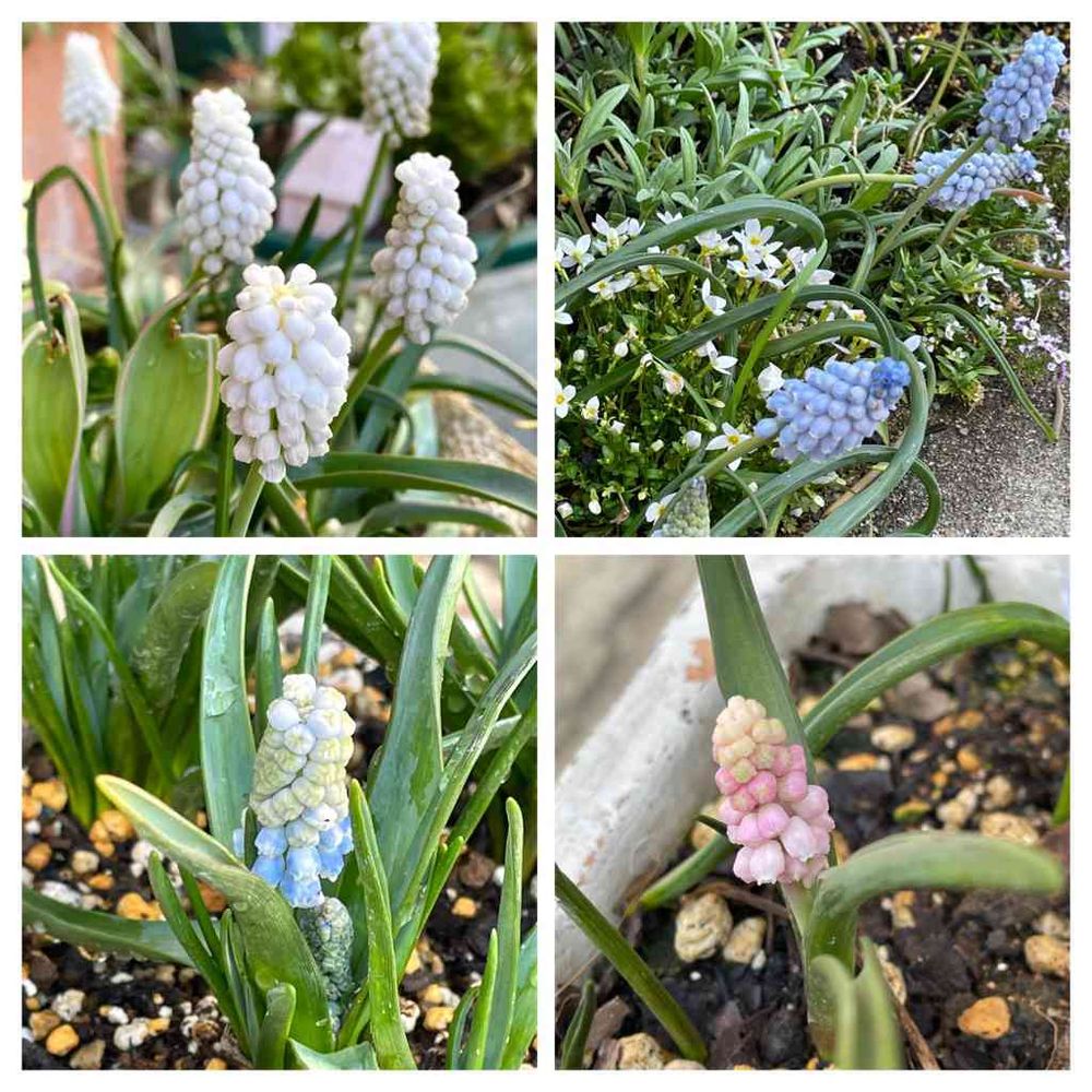 秋植え球根のムスカリと3年目のムスカリ ピンクサンライズが咲き出してます🥰
