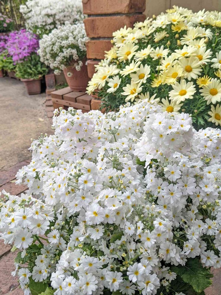 手前は25センチの正方形のプランターてすが、後の白のサクラソウプランターは30センチのパンパンなんですよ🤭