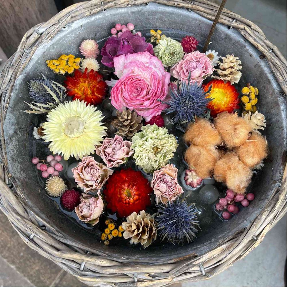 ドライの花手水と書いてあったので、ふわふわのはコットンフラワーではないでしょうか