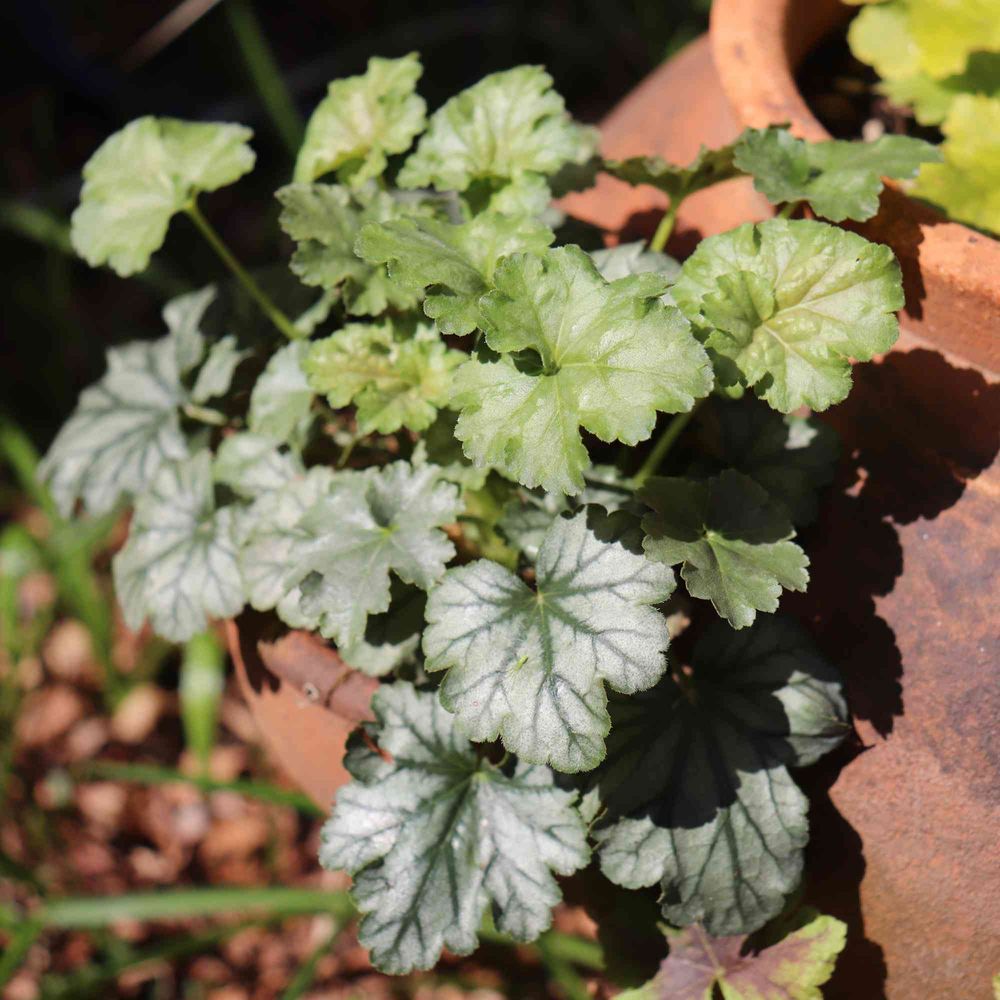 冬越ししたヒューケラの、新旧の葉の違いがキレイ✨😊