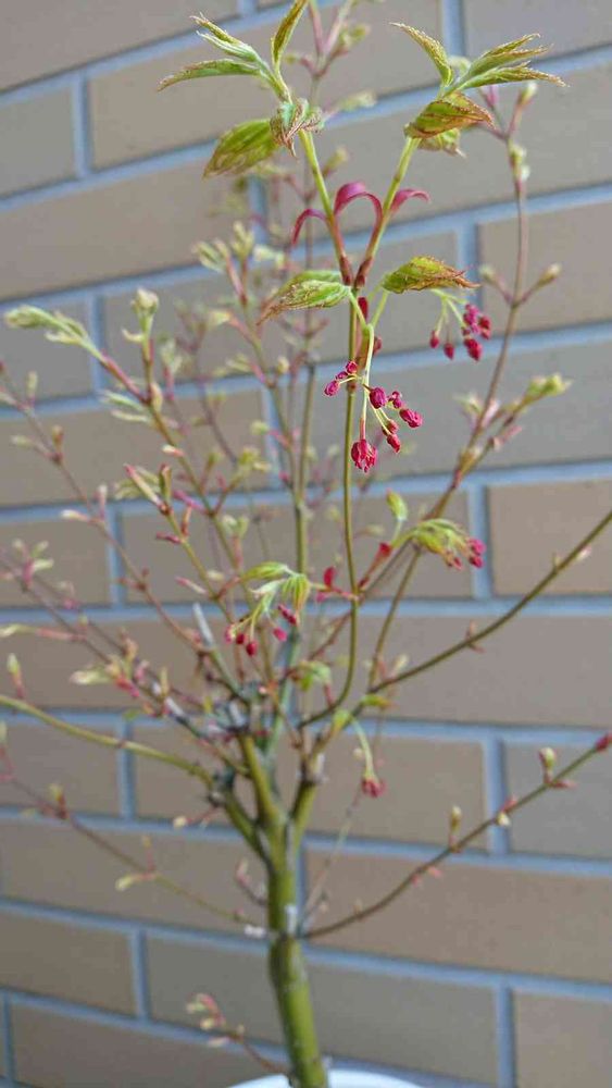 もみじって新芽と同時期に花が咲くんですね🍁 プロペラはよく見かけますが、赤い花には気づきませんでした😅 もみじの新緑は大好きな色です🌿🌿 斑入りってどんなのか楽しみです💕