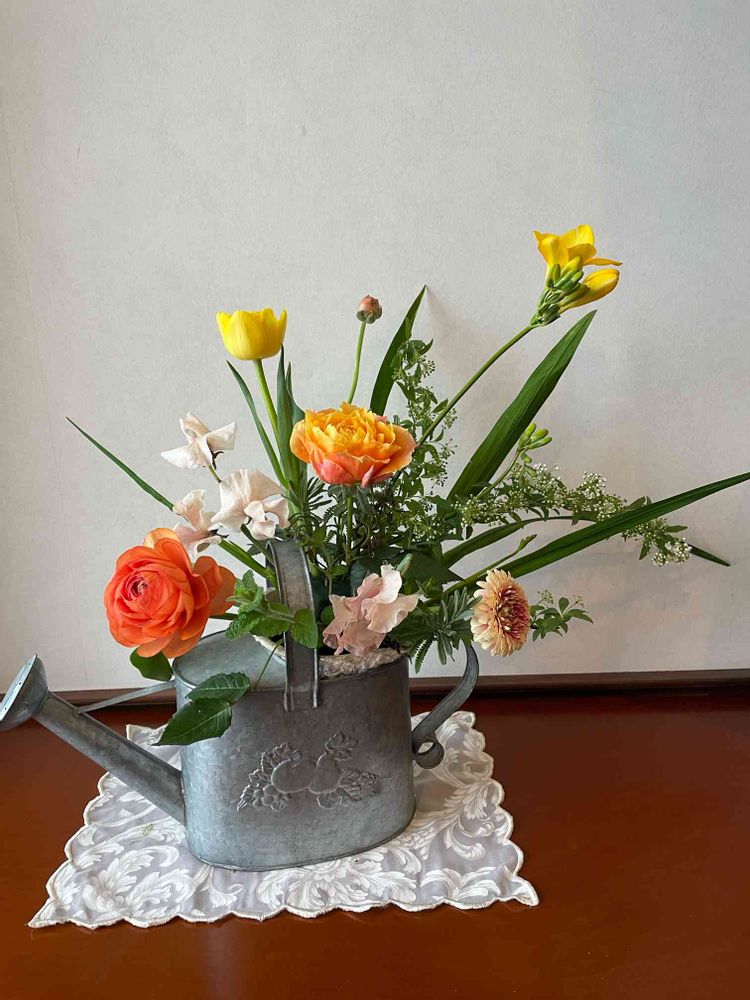 ブリキのジョーロとビタミンカラーがとてもマッチしています😃