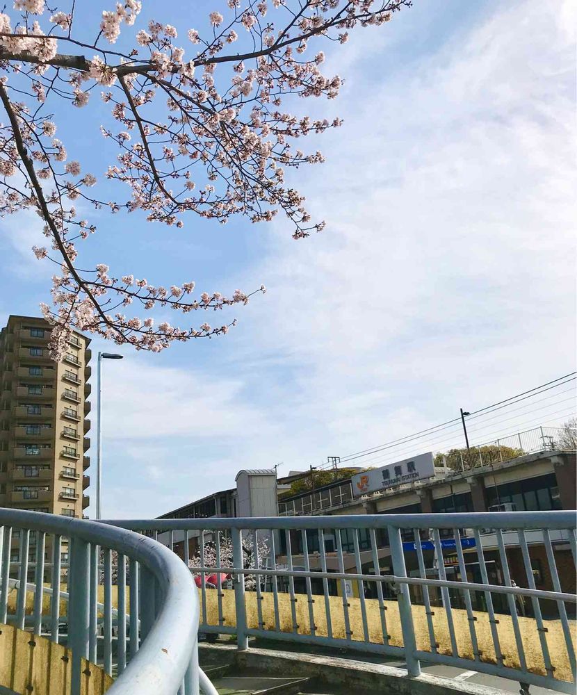 駅名がなんとなく一緒になる位置で撮りました😊 比べて見ると桜の枝の位置が微妙に違います