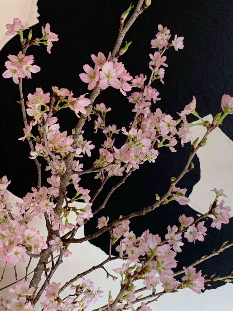 とあるお寺のお玄関💕立派な書の前に桜が生けられていて、夜桜お七みたいに粋でした😍