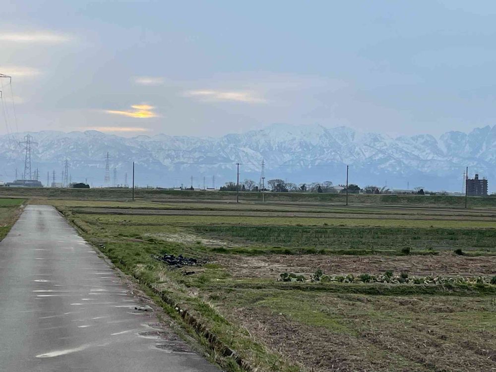 前方の山々はまだ、雪が残ってるのかな?? 日本アルプスなのかな?!!