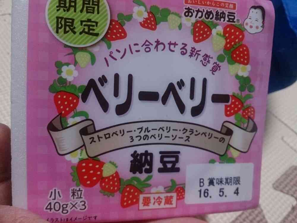 食べてみました。もう少しベリー系の味が濃くて、納豆の豆感が控えめならいいかも。