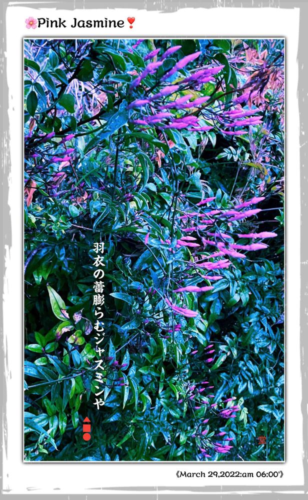 🗒過去に投稿した「羽衣ジャスミン」は、下記の【キーワード】選択で【羽衣ジャスミン 和堂】をタップすると、その全部たくさんの花が見られます。