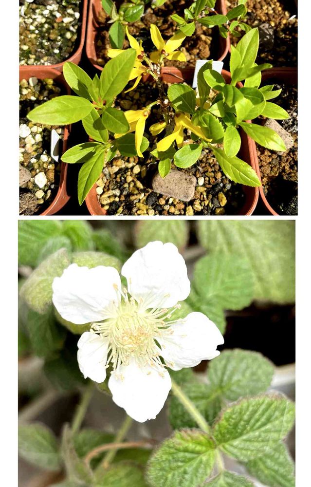 レンギョウ🪴と野いちご🍓の花が咲きました😁