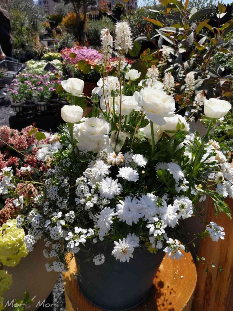 真っ白なお花の寄植えが綺麗でした✨