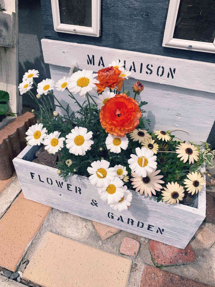 木箱に寄せ植えって可愛いですね😊 これもDIYですか? いつも可愛い鉢に植えられてるので花もさらに可愛らしくなりますね!