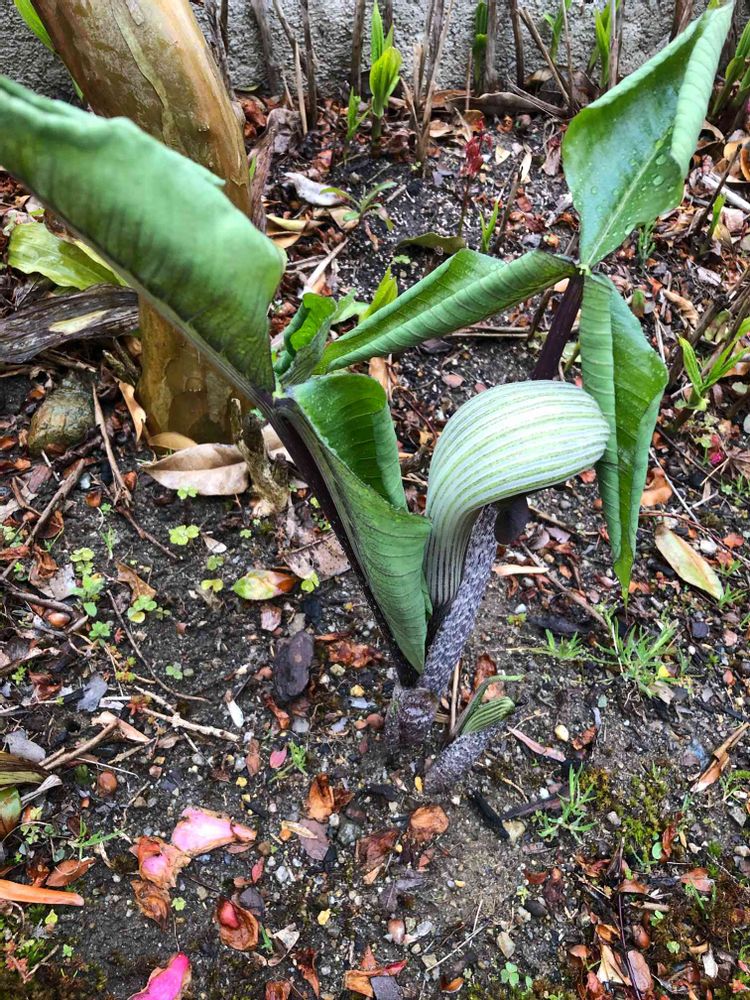 今朝見るとムサシアブミの花がこんな感じで咲き始めていました。