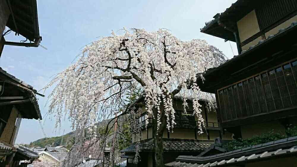 京都東山「産寧坂」の垂れ桜、満開でした!