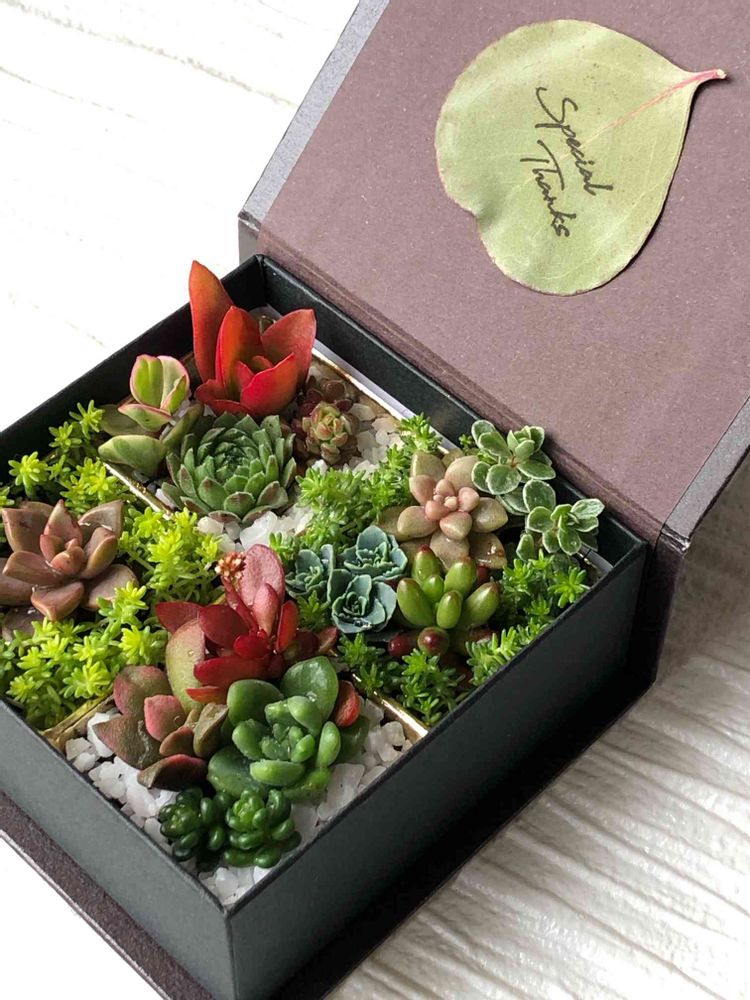 そういえば何年か前のトシちゃんのバースデーパーティーの時、多肉をこんなふうに箱に入れてプレゼントしました。そしたら、トシちゃんに「本物?」って聞かれたことがあったなぁ〜〜🥰🥰