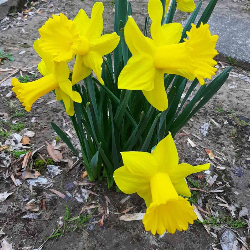 黄色 ラッパ水仙が元気に咲いています💛💛