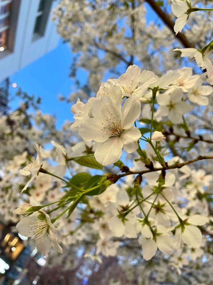 お花が真っ白でソメイヨシノ🌸ではないように思います😊