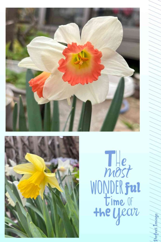 昔からある黄色のラッパ水仙と口紅水仙です。