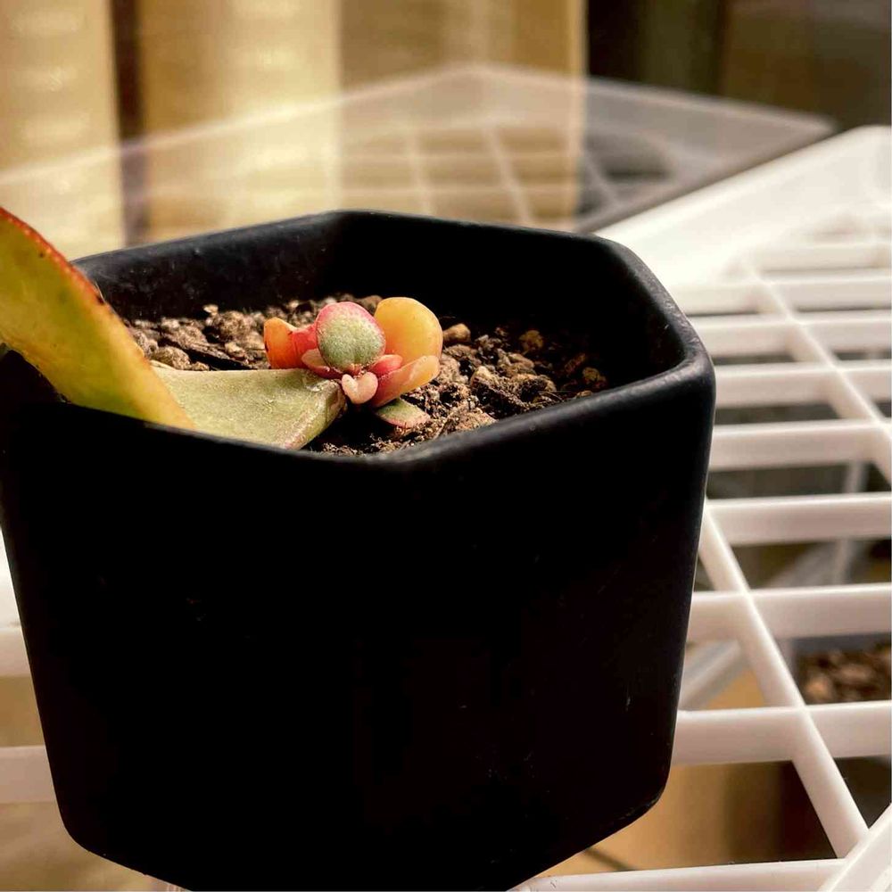 葉緑体出てきてくれて安心。元々は真っ黄色の葉っぱと黒い鉢でかっこよくなってほしかったけど、元気が1番!!