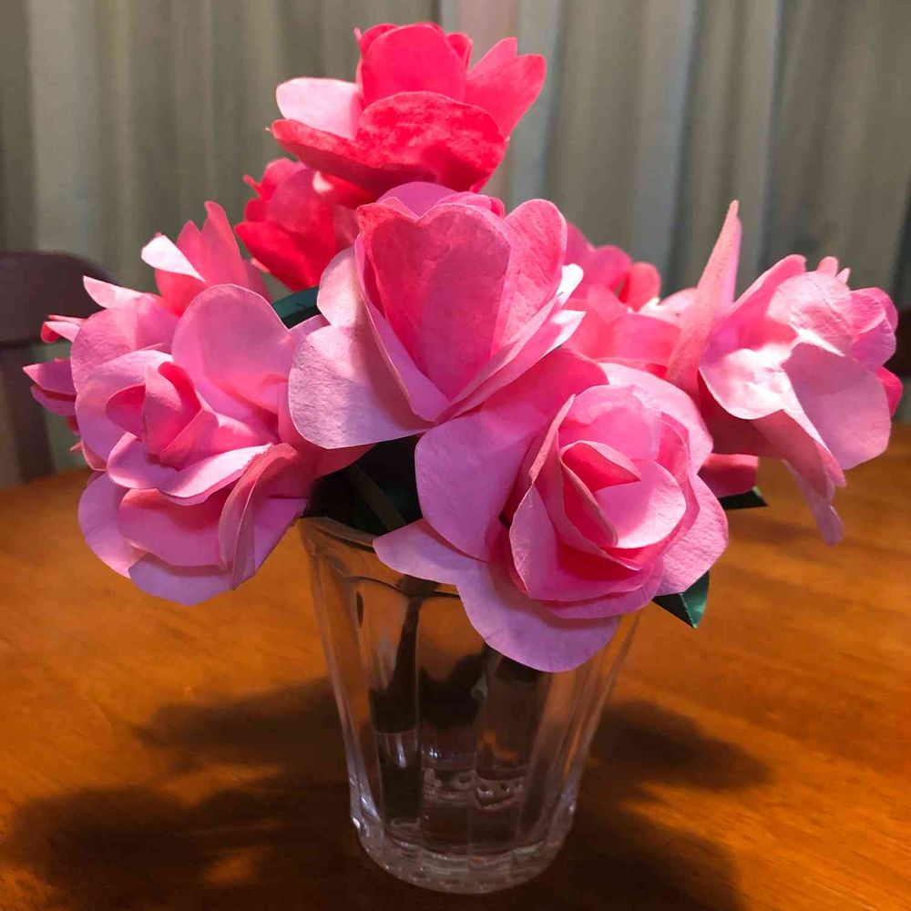 ペーパーフラワー、小さい頃作ったのを思い出して作ってみたよ。😄