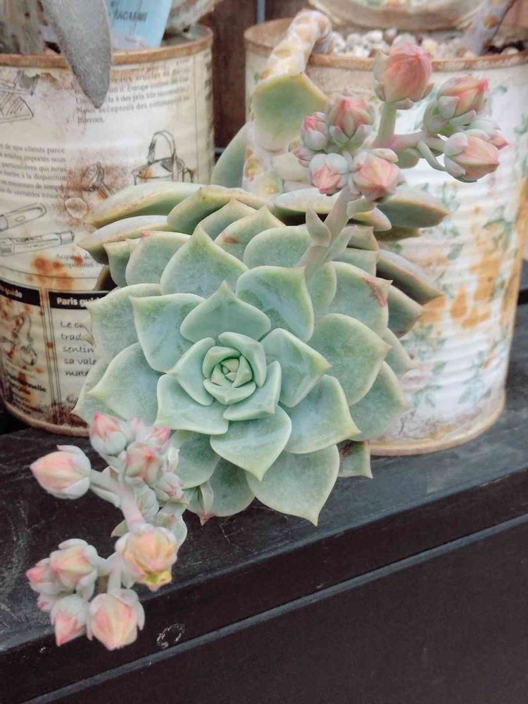 庭や家の中にDIYで作った物と一緒に多肉植物やバラ、寄せ植えをかざって、楽しんでます🌼