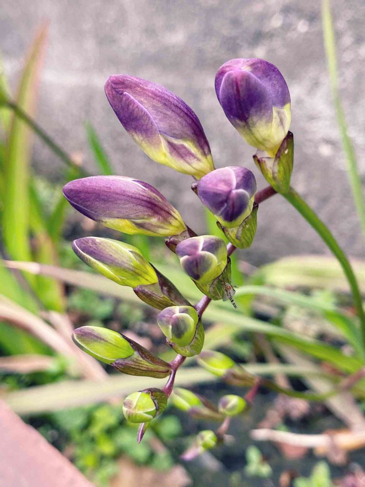 紫のフリージアさん、咲くのもうすぐですね😊いい匂いしてるかな〜🥰