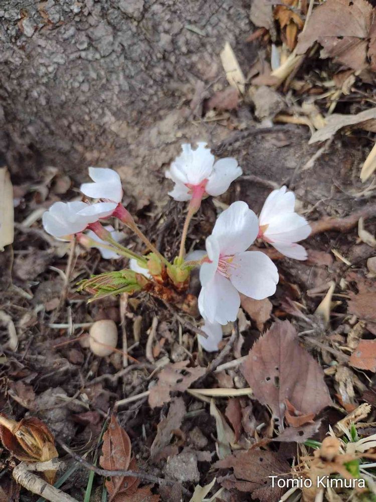散歩道(京都丹波亀岡 南郷公園)の桜の木の根っ子から桜の花が、、、