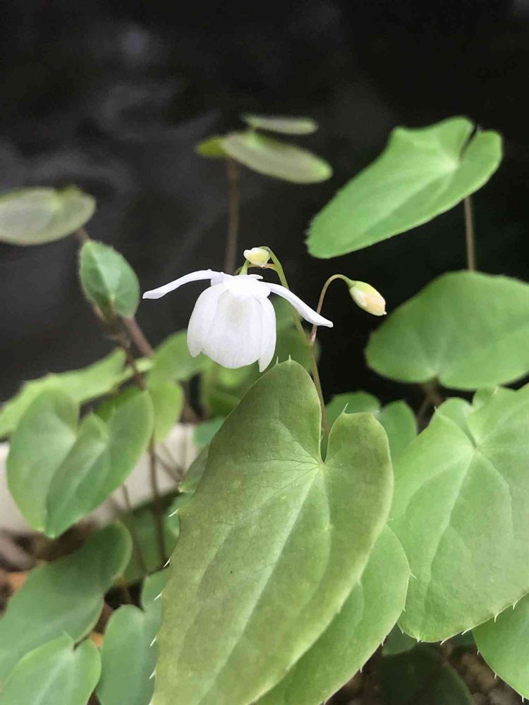 葉っぱは写真で分かるようにイカリソウと同じですが、花は丸くて可愛いです😍💕。本家のイカリソウとは花の形が随分と違いますが、いつ頃からどんな理由で違い始めたのか気になります。この花は鉢植えですが、いつか山野で見てみたいものです😊。