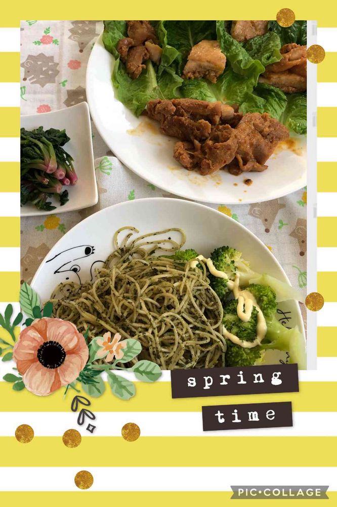 バジルパスタ🍝ちぢみほうれん草