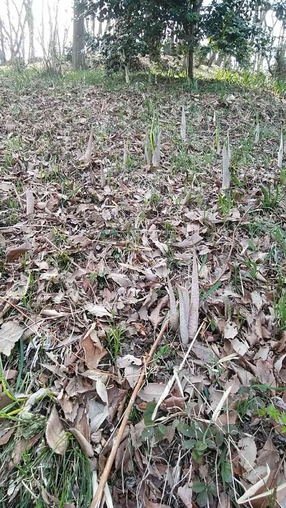 斜面いっぱいにムサシアブミの芽が…これが全部開いたら…見たいような、怖いような😅