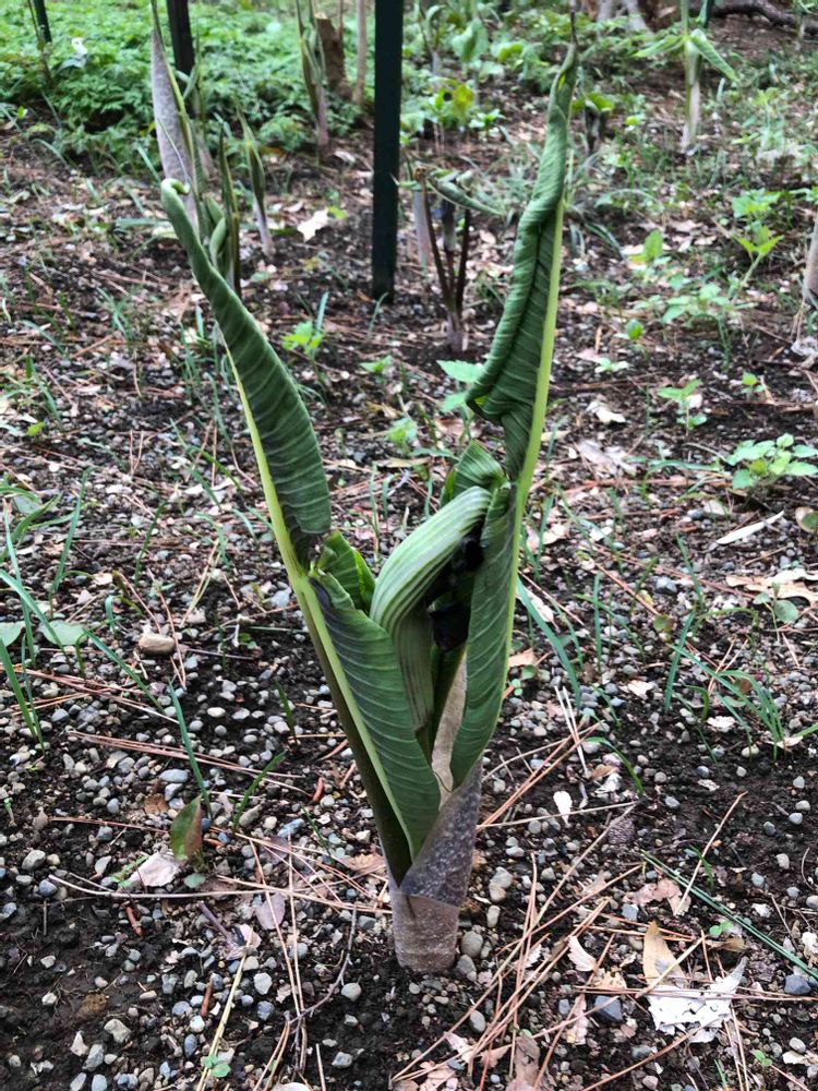 別の方にご指摘いただいて判明したのですが、どうやらウラシマソウではなくムサシアブミみたいです🙇♂️