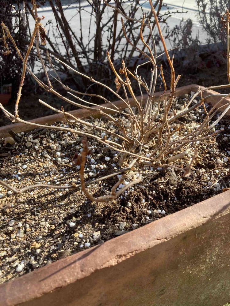 八重咲きのアナベルが冬を乗り越えた喜び✨🌸本の小さな芽がたくさん着いています!ほぼ枯れ木に見えますがちゃんと生きています