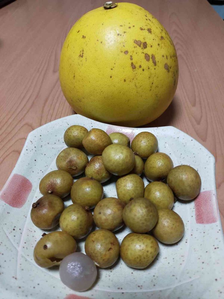ベトナムのミャンという果物です。龍眼とも言われているそうで、手前の皮を剥いた状態が龍の目玉に似てることからそう呼ばれるそうです。