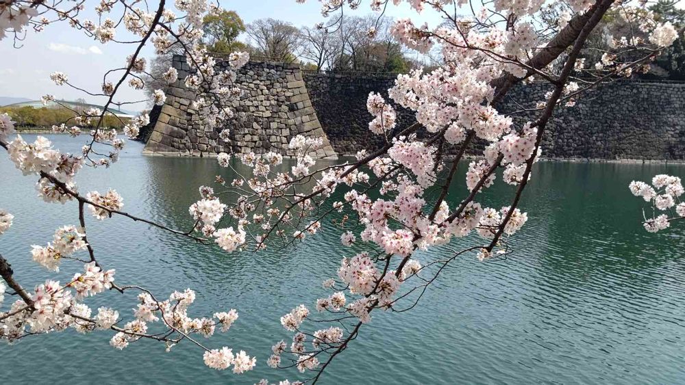 これはお堀の外周からの写真で、桜の枝がお堀に伸びて、良い感じで風に揺れてました😊
