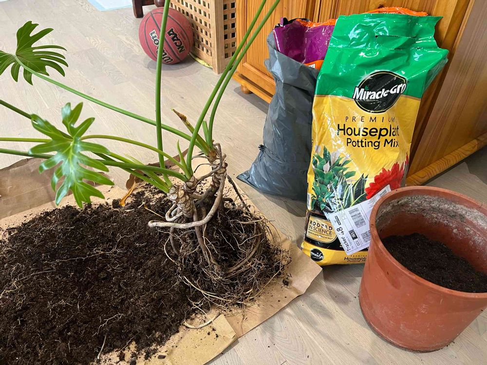 家にあるモンステラ、どんどん葉っぱが減って来てしまったため、これはずっと替えてない土の栄養不足に違いないと観葉植物用の土を購入、これを機会に家中の観葉植物の土の入れ替えをすることにしました。