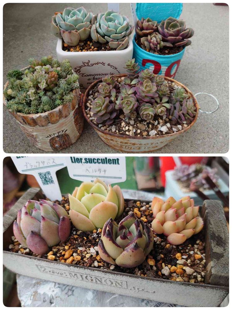 多肉みどりのマルシェで連れて帰ってきた子たちを植え替えました🤗いつもネットでお世話になっている(勝手に)初ドルチェさんブースに行くのが目的だったのでお話出来て良かったです♪ドルチェ苗2つ頂きました😳🌵久しぶりに休日のお出掛け楽しかった〜💕