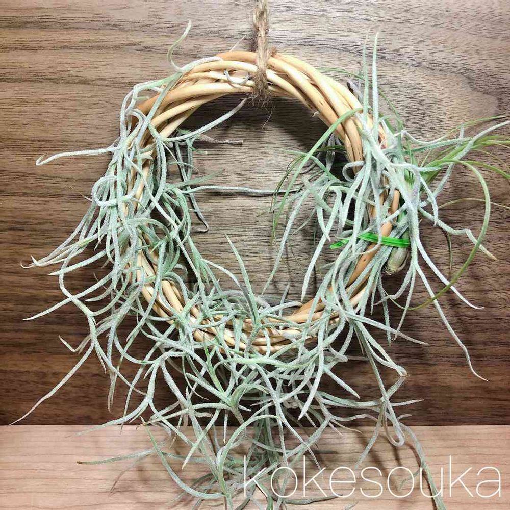 ウスネオイデス(太葉)とチランジアでリースをつくりました。土台はダイソーの柳リース(直径約10㎝)です。