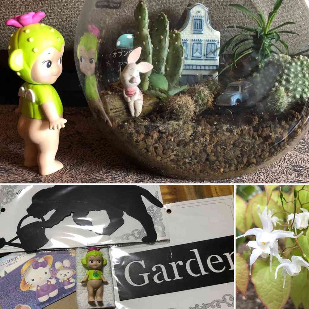 ↙️はく社長さんから、、☆🌈になった愛犬ゴールデンとGardenの文字プレートと、🌵のソニエンくん。