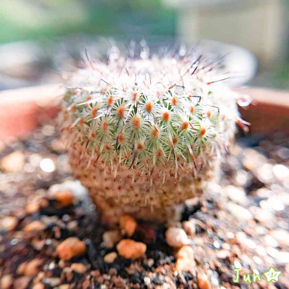 エピテランサ属のサボテンです!おそらくかぐや姫という品種。かなりゆっくり生長します。トゲは素手で触われるレベルのへぼさw 陽当たり良好な場所で管理します(^^)