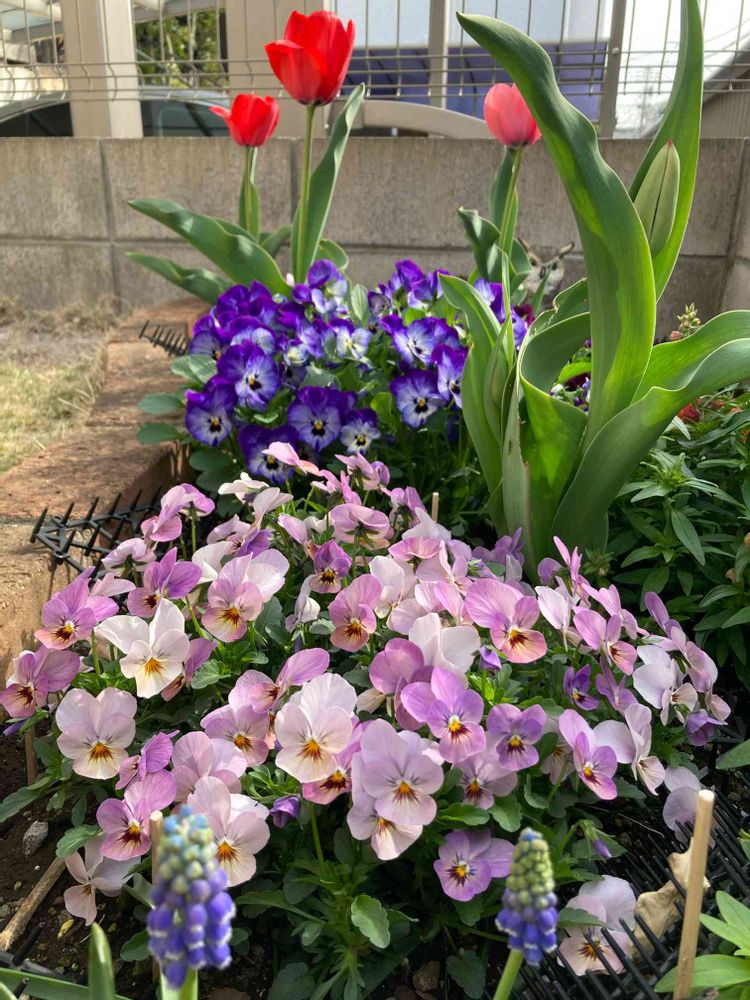 手前のムスカリさんは、何度か野良猫ちゃんに掘り返されるという危機を乗り越えて咲いてくれました😊