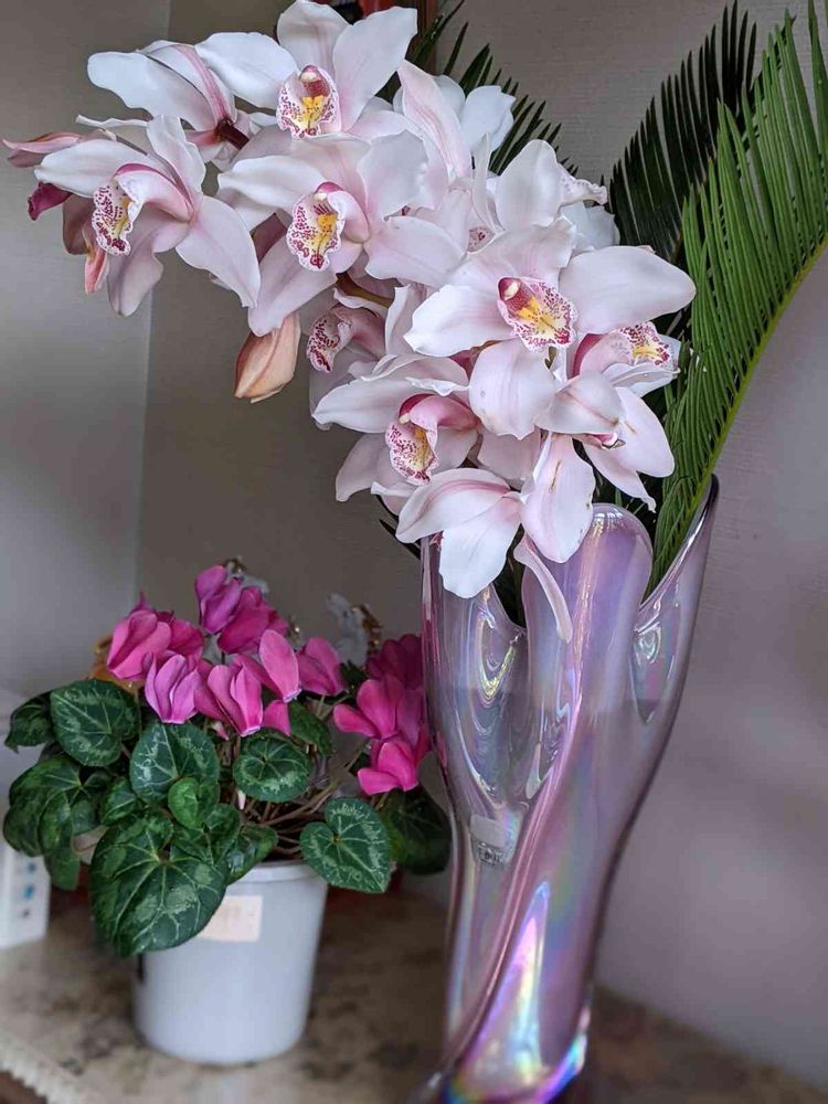 長い間鉢植えで咲いていたシンビジウムをやっと切り花に〜