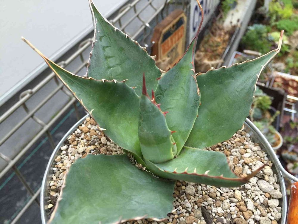 かっちょいぃーですね(^_^)葉が薄くて先端のスピンがスッと伸びてるとこから、ワステカとかオバティホリアかな~と思いますが、アガベはとにかく種類が多いしまだまだ初心者なのでこれ!というのはなかなか難しいですね~(-_-;)