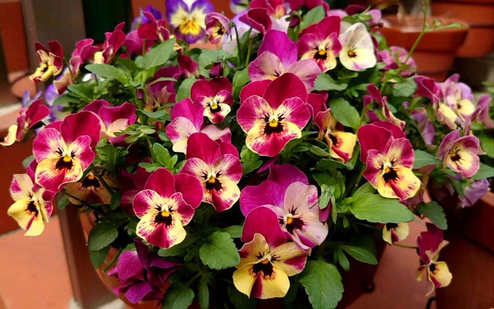 八号鉢のビオラ✨