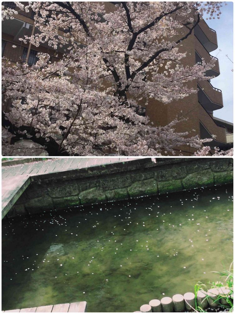 お出かけ先,用水路の桜,用水路に流れる花びらの投稿画像