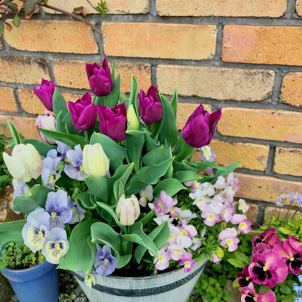 チューリップとビオラがいい感じにモリモリしてきました💕💜