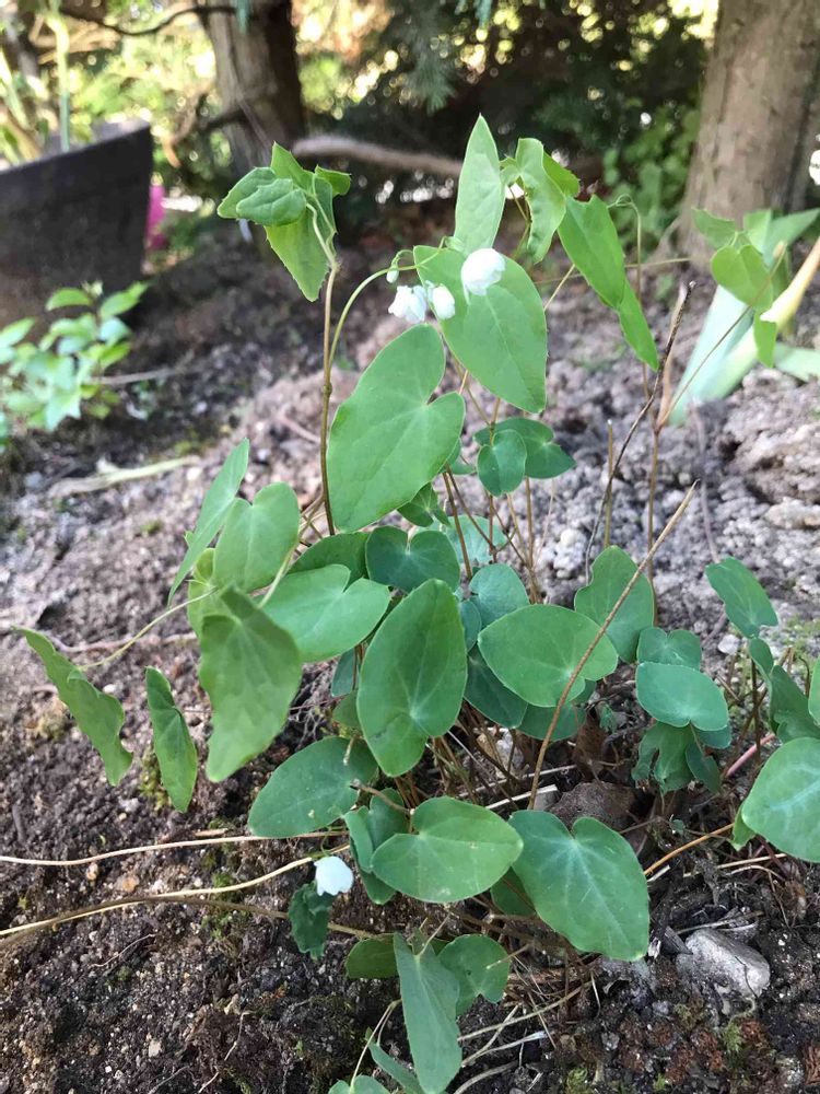 梅花いかり草です。山のお隣さんから苗をいただいて、植えました。
