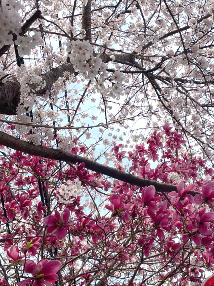 桜と木蓮が交互に咲いてるなんて素晴らしー✨‼︎