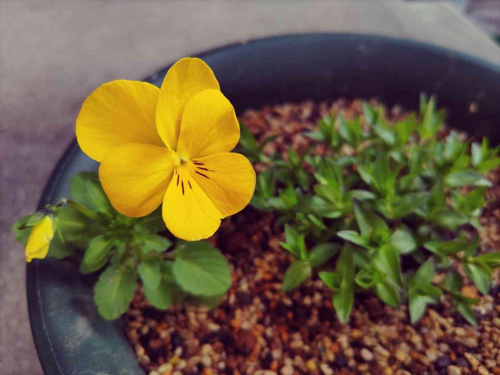リンドウが芽を出したと思ったら、ビオラにも蕾がついていて!咲き始めました😊