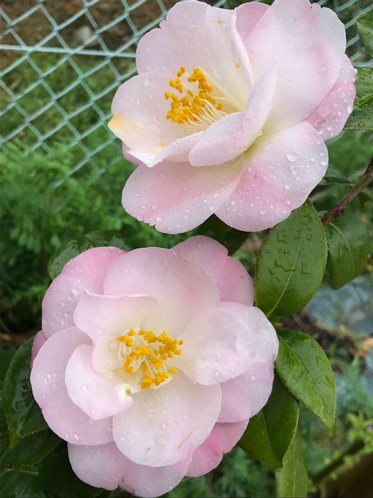 小雨の中、今裏庭で撮ったばかりの椿です✨✨