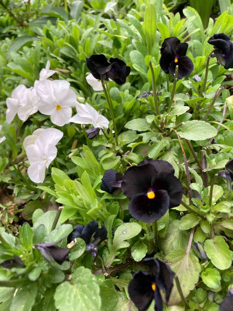 このblackのビオラは、花の向きがバラバラで、他のビオラは、割と同じ向きに咲いてるのに、協調性は、無いみたい。でも自分の好きな向きで咲くっていうのは、ある意味羨ましいかも。🥰