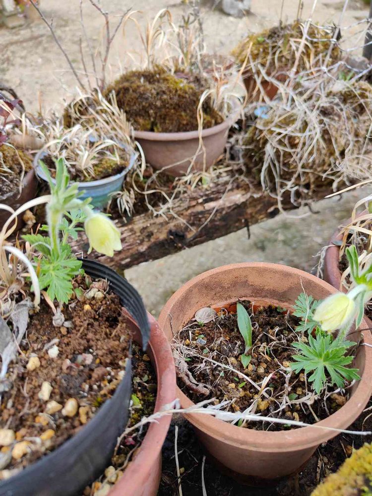 色々な鉢に飛び込みで増えてきました白花は珍しいかも