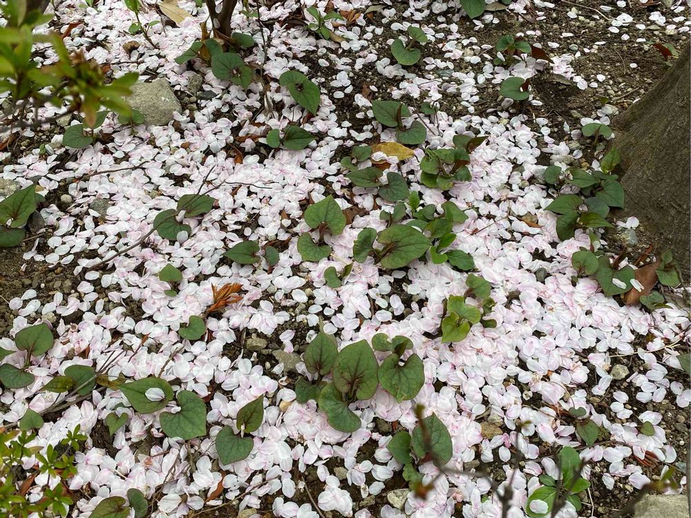 ドクダミ若葉と桜吹雪の異色コラボ...